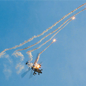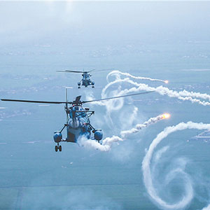2018-11-22 08:3011月18日,第80集团军某陆航旅武装直升机在训练中释放干扰弹。空降兵某旅组织开展空地协同实兵实弹演练