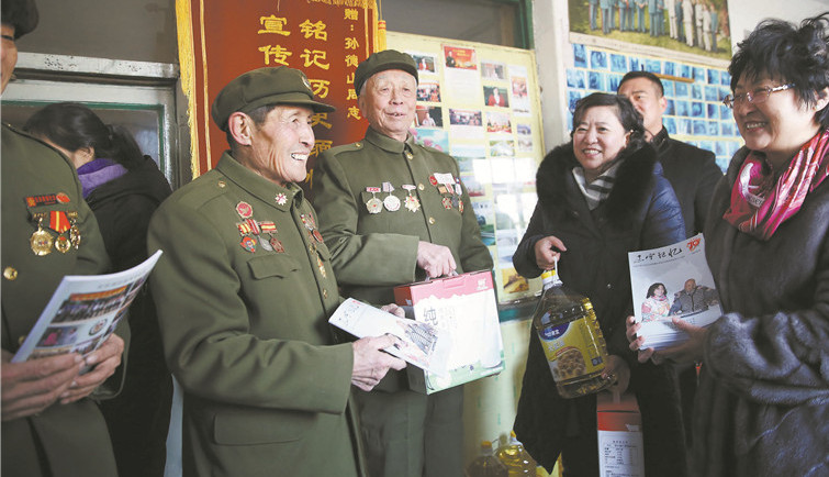 得知抗美援朝老战士孙德山(左三)所在村革命历史展馆急需修缮,辽宁省国防教育基金会借助公益平台发起爱心捐助活动,募集善款4.8万余元,帮助老人完成了修缮展馆的心愿。