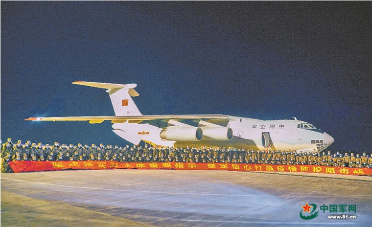 2月2日凌晨,一支军队支援湖北医疗队从兰州中川机场乘坐空军运输机出发,驰援武汉疫情防控一线。刘一波 摄