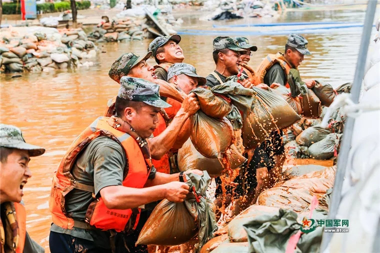 今年,长江洪水再次肆虐。不同的迷彩颜色下,是似曾相识的晒爆了几层皮的黝黑臂膀,是回荡不息的“人在堤在”的铿锵誓言,是依旧坚不可摧的“血肉长城”。