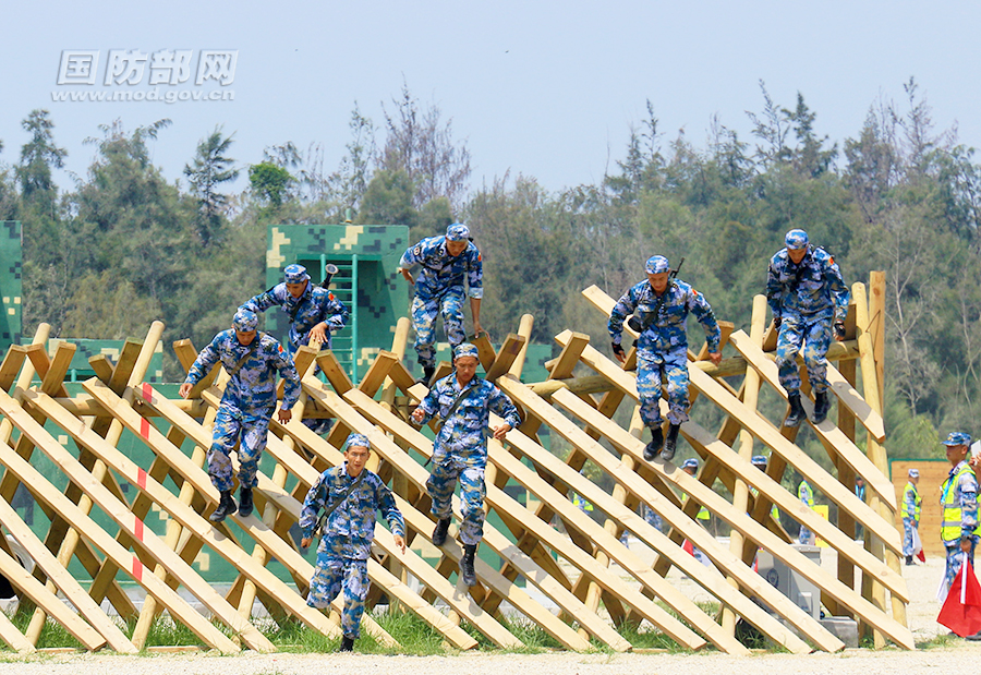 中国参赛队员队通过鹿砦。尚文斌 摄