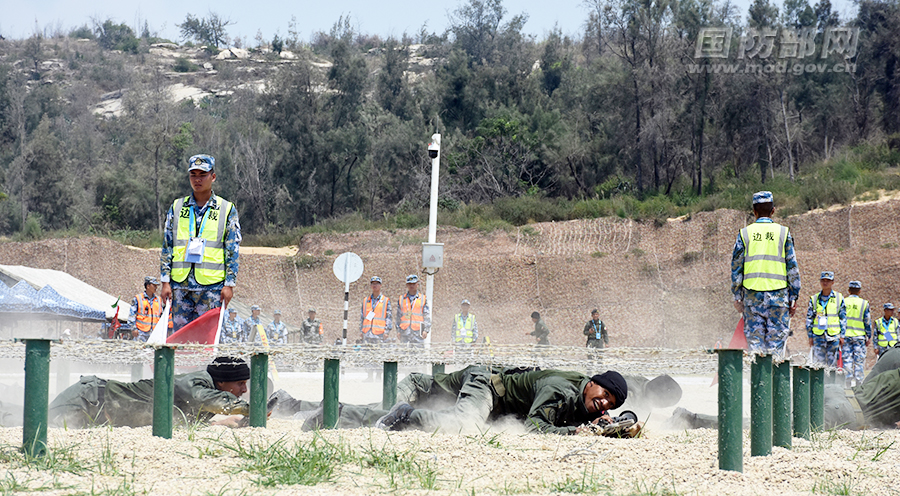 委内瑞拉参赛队员通过低桩铁丝网。焦国庆 摄