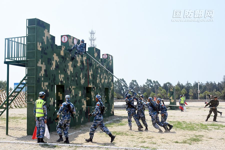 中国参赛队员通过混凝土墙。焦国庆 摄