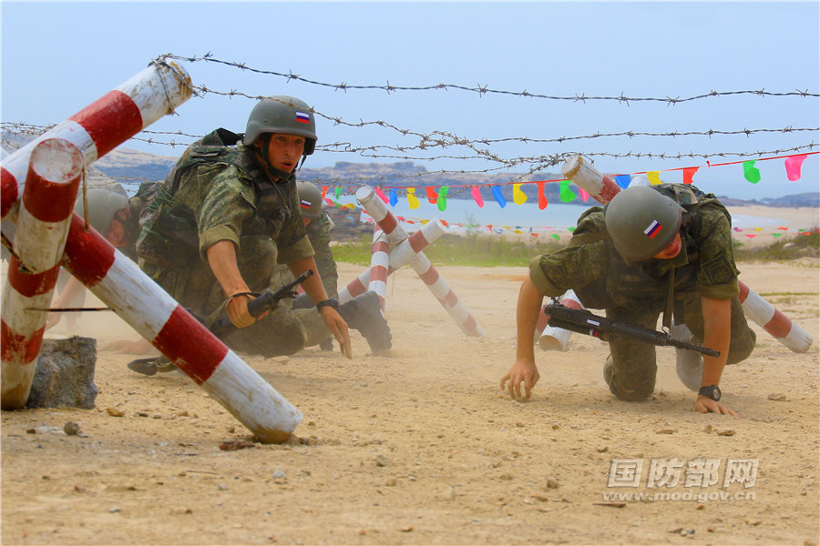 俄罗斯队通过拒马。尚文斌 摄