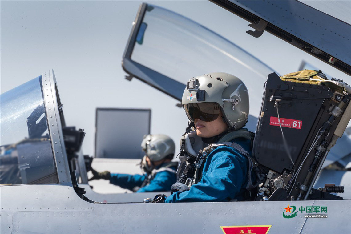 歼-10A战机飞行员等待开车指令。杨盼 摄