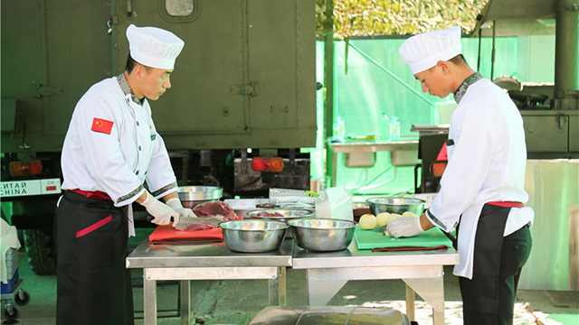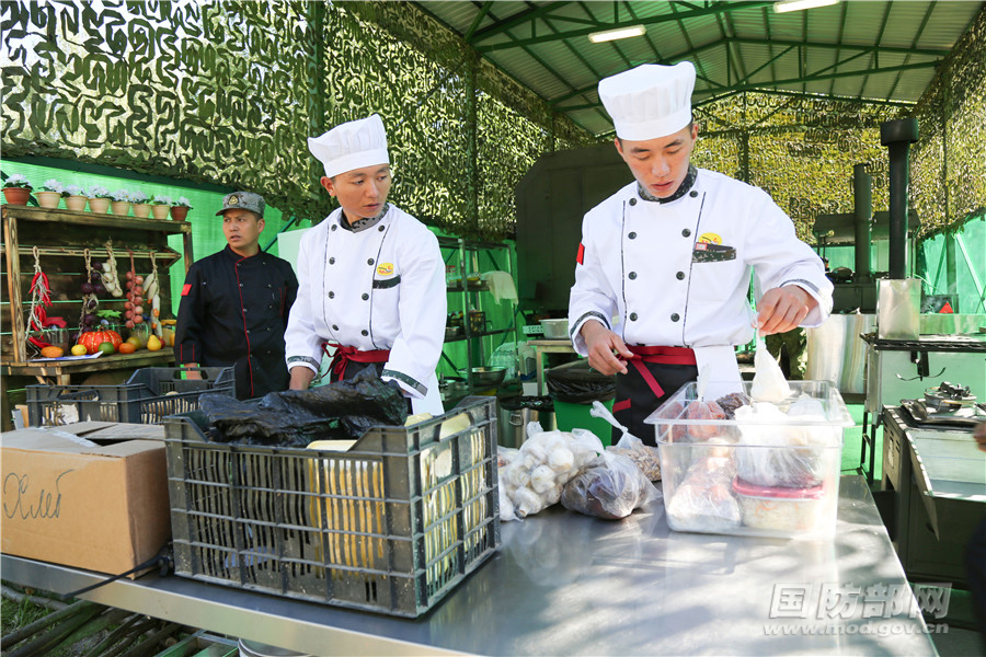 中国参赛队清点俄方提供的食材。宋珂佳 摄