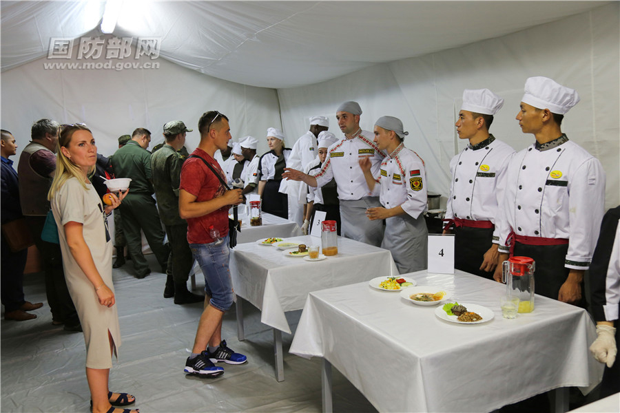 俄罗斯民众品尝各参赛队伍制作的西餐。宋珂佳 摄