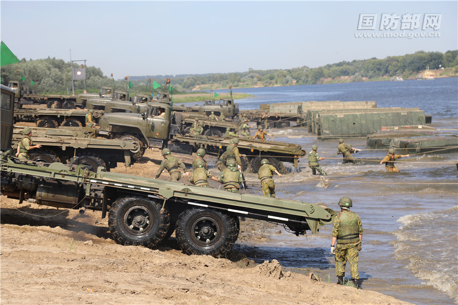 俄罗斯参赛队进行泛水作业。虞平 摄