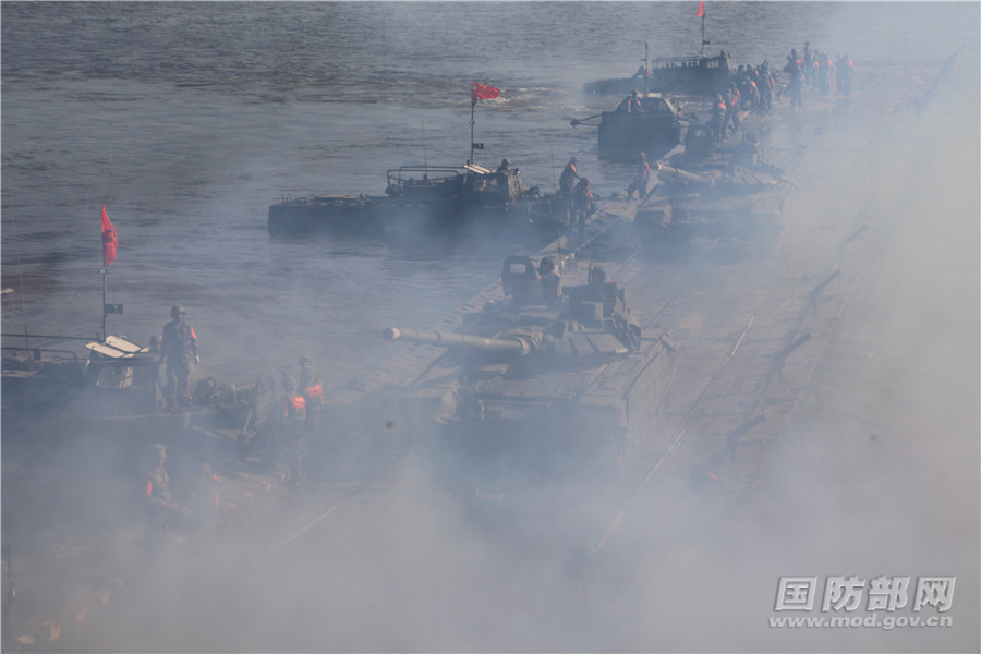 中国参赛队进行门桥漕渡作业。虞平 摄
