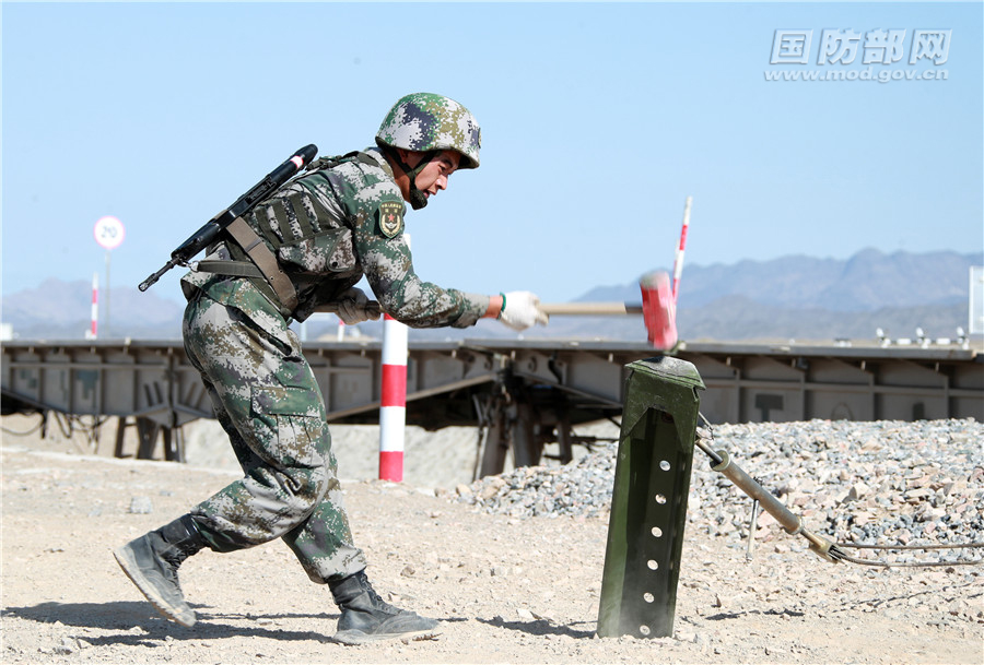 中方参赛队员打系留桩。袁凯 摄