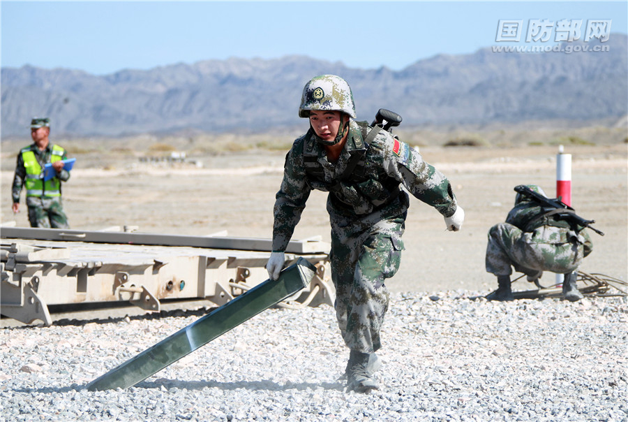 参赛官兵做好系留桩固定准备。袁凯 摄