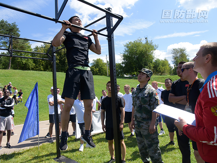 参赛队员刘建平做引体向上。杨生昭 摄