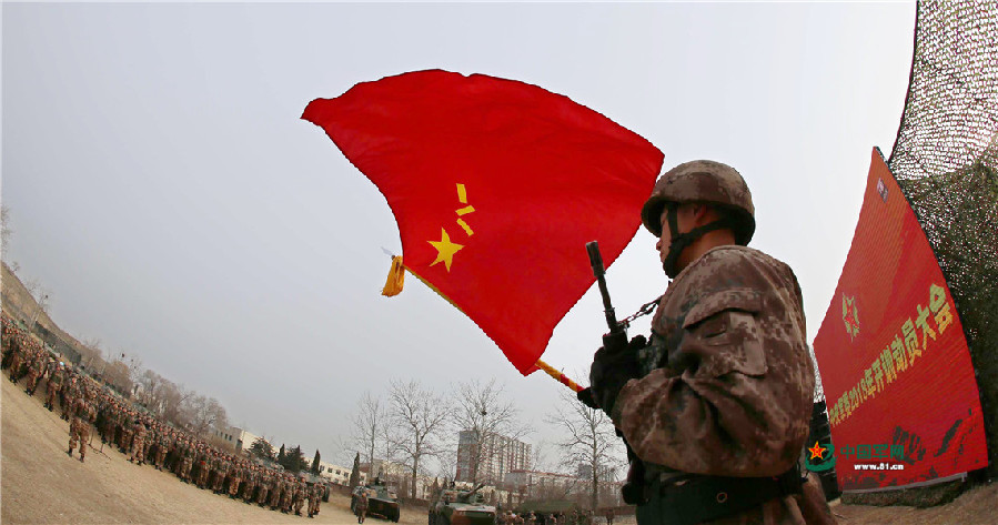 北部战区陆军首长机关和直属部队官兵面向军旗庄严宣誓。徐宁 摄