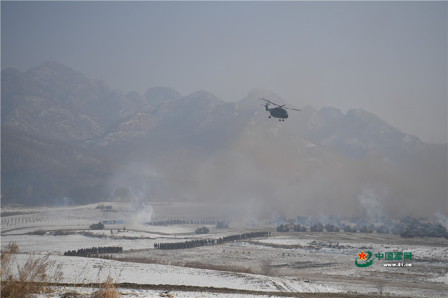 陆军第78集团军某合成旅在冰天雪地展开多兵种合成训练。田果 摄