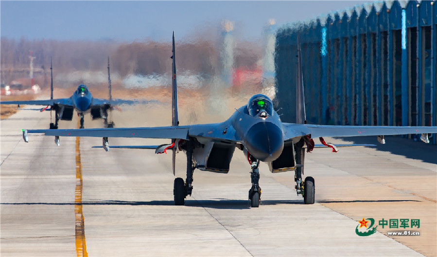 战机滑向起飞线。杨盼摄影