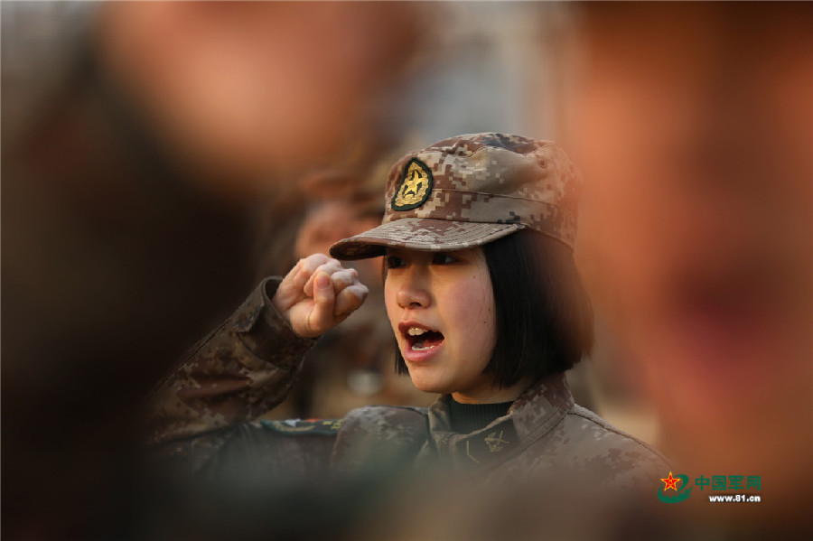陆军第80集团军某合成旅一名女兵在开训宣誓中。夏先杰 摄