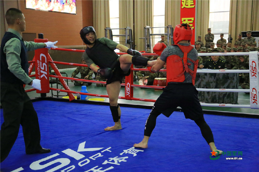 陆军第80集团军某特战旅展开搏击训练。侯彬 摄