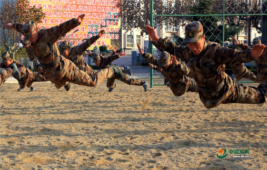 陆军第80集团军某特战旅展开前扑训练。侯彬 摄