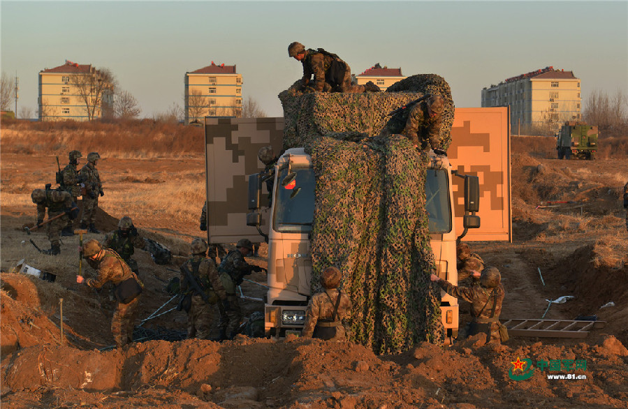 陆军第80集团军某合成旅组织构工伪装训练。贾春明 摄