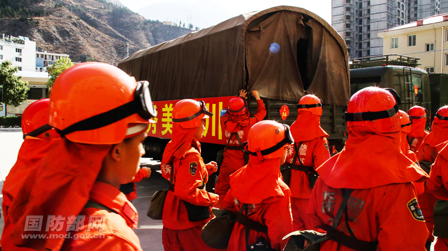 官兵们有序领取装备。