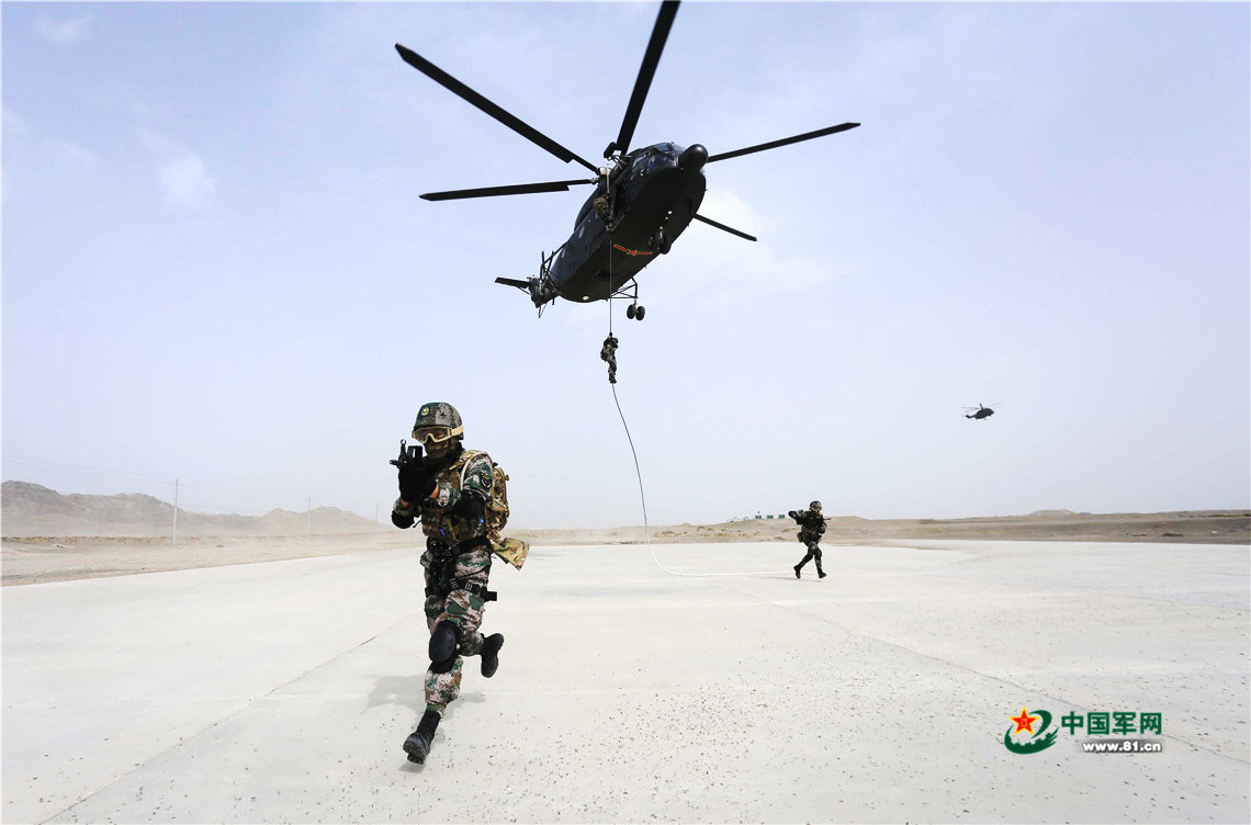 侦察分队机降后快速占领射击位置。