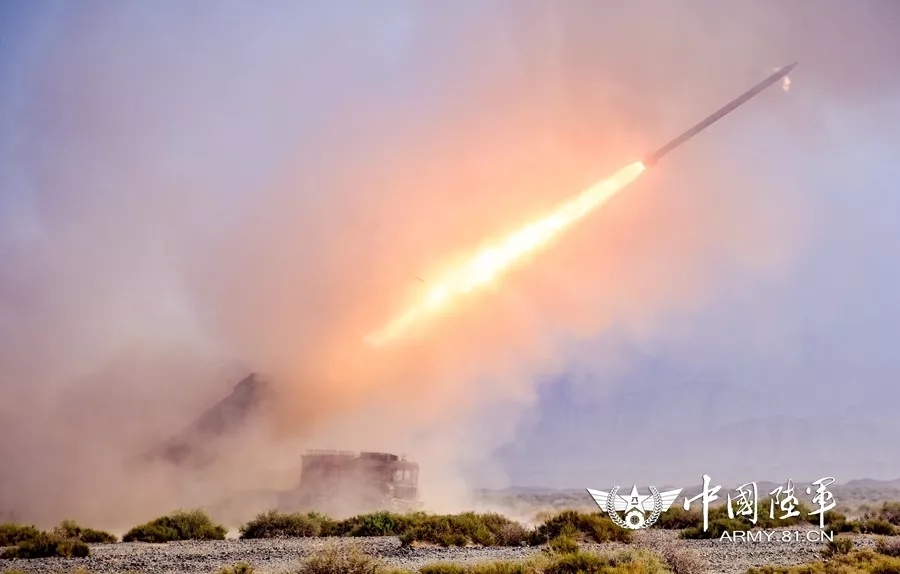 ▲远程火力对抗群专项演练中,远程火箭炮进行火力打击。