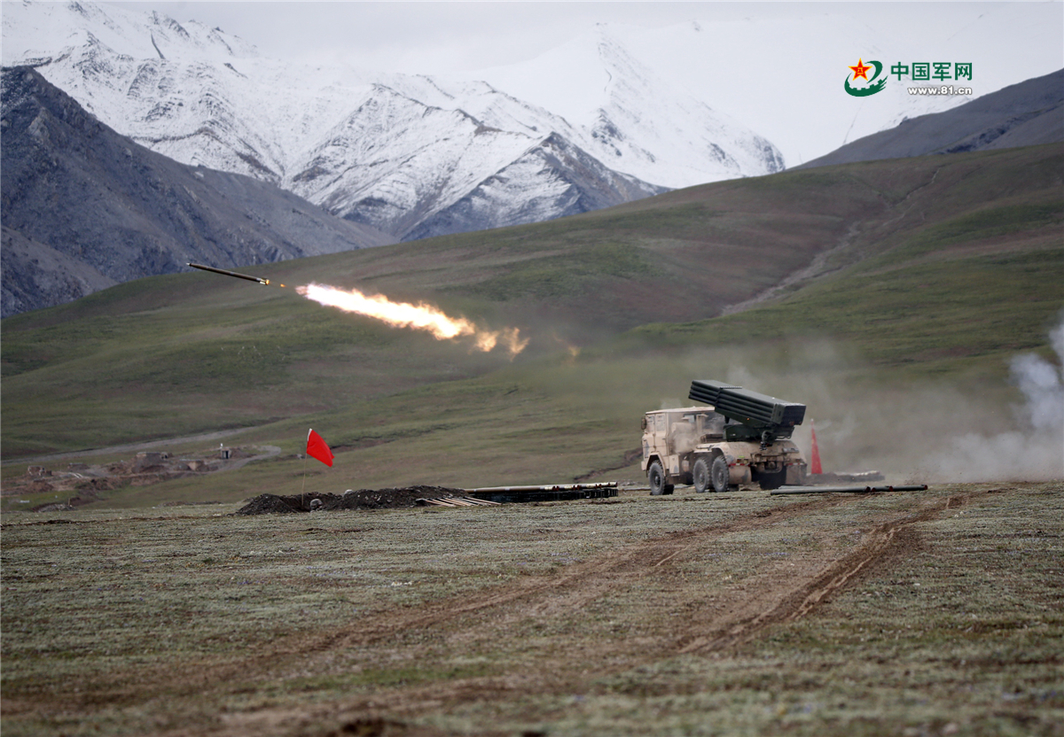 某型火箭炮实弹射击。