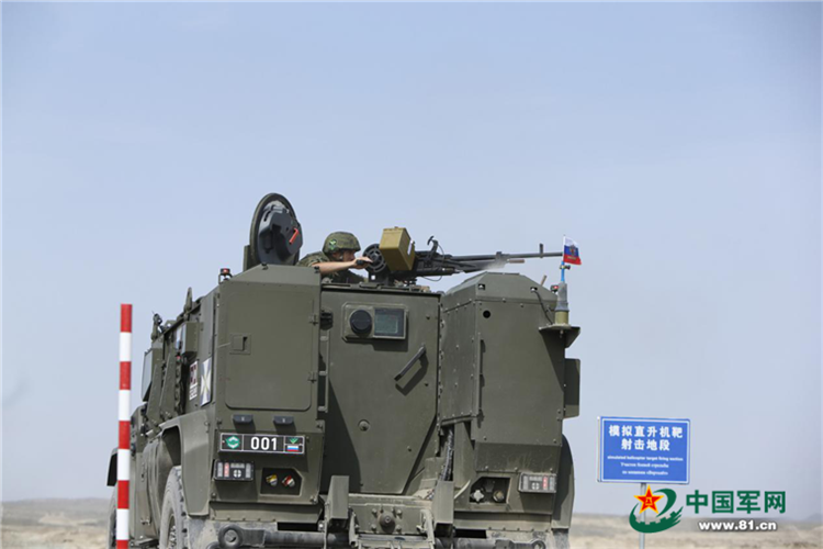 俄罗斯参赛队机枪手利用高射机枪打击目标。李康摄
