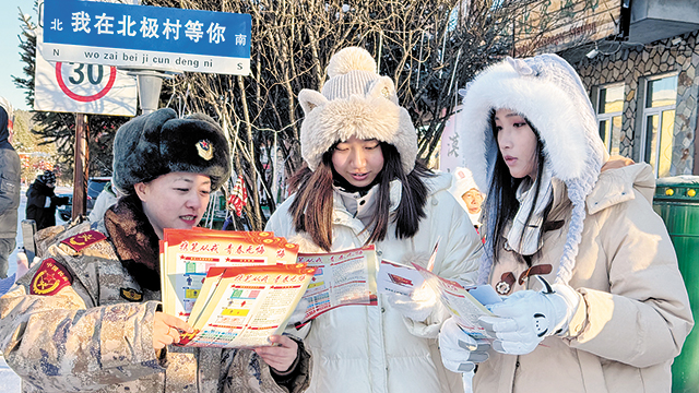 黑龙江省漠河市征兵办公室为适龄游客宣讲征兵政策