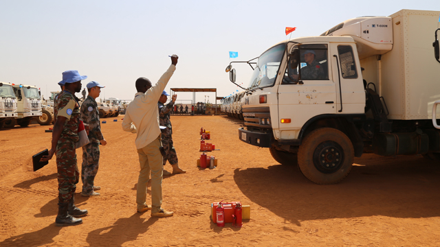 联马团装备核查组核对车辆信息。