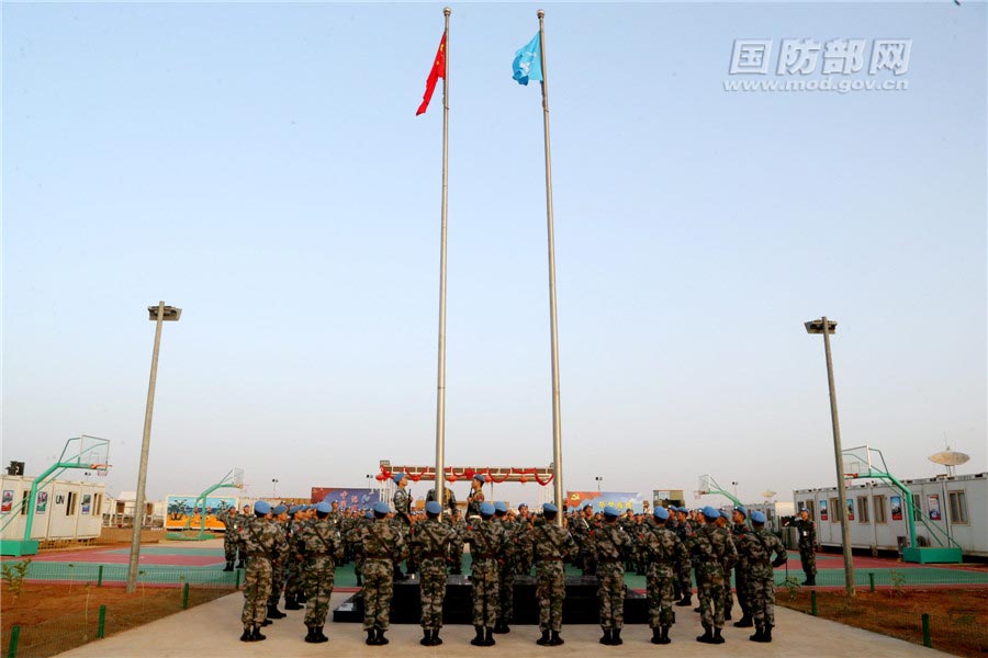 当地时间3月19日,中国第5批赴马里维和部队举行升国旗仪式。