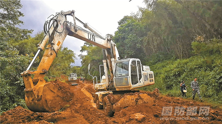 中国第21批赴刚果(金)维和工兵分队利用雨季结束的时机紧急抢修道路。王俊摄