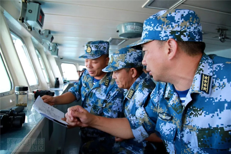 图为黄山舰任务指挥所研究分析演习意图、确定战术方案。
