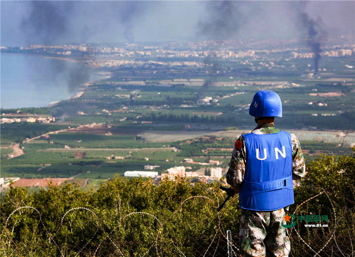 2019年10月18日,黎巴嫩多地发生示威游行,部分示威者在维和分队营区3公里附近焚烧轮胎、垃圾,阻断交通,哨兵加强观察巡逻。