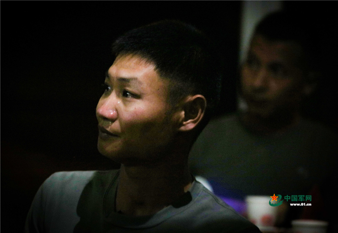 2019年8月9日,在集体生日会上,四级军士长孔令桂看到家人录制的VCR后,留下了泪水。
