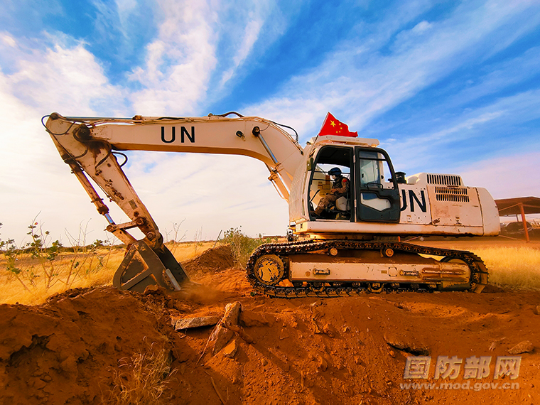 近日,中国第9批赴马里维和工兵分队经过20个工作日的连续奋战,提前10天高标准完成加奥机场油库防护墙修建任务,受到联马团工程部门的好评。图为我维和工兵在施工期间驾驶机械装备紧张作业。 王宏阳 摄