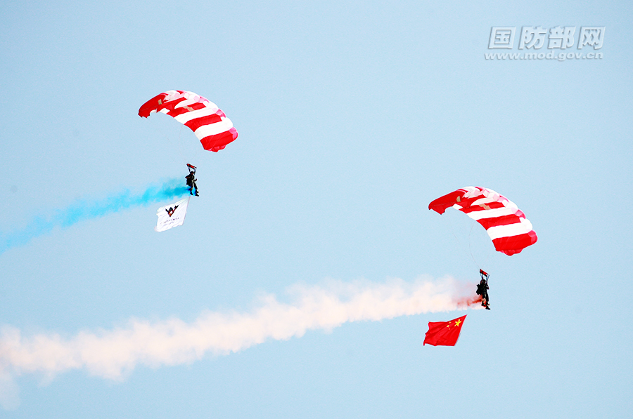 朵朵伞花从天而降。袁凯 摄