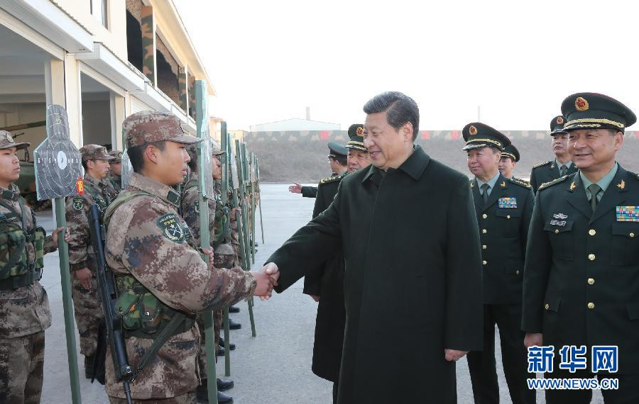 2013年11月28日,习主席视察原济南军区部队。习主席观看新战士自动步枪精度实弹射击后,表扬新战士取得了好成绩。