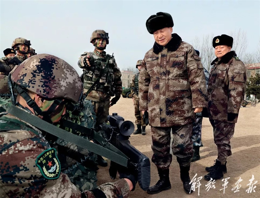 2018年1月3日,习主席视察中部战区陆军某师。这是习主席询问数字化单兵作战系统情况。