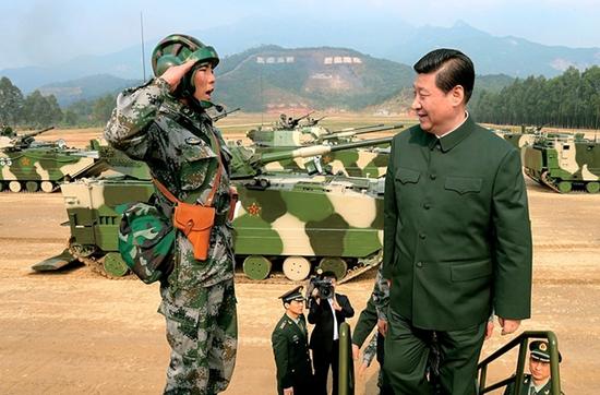 2012年12月10日,习主席在原广州军区某部训练场登上两栖突击车了解装备情况。