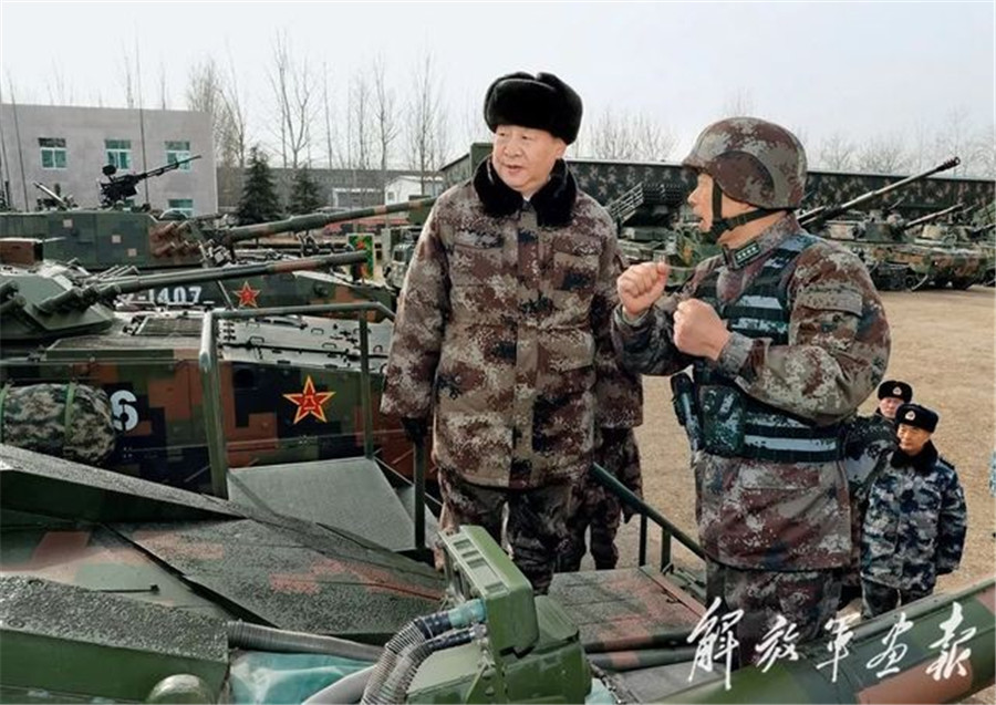 2018年1月3日,习主席视察中部战区陆军某师。这是习近平登上红箭-10导弹发射车,详细了解装备战技性能。