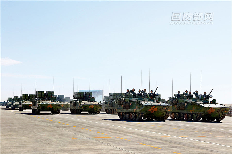反坦克导弹方队受阅的红箭-10反坦克导弹,既能精确打击地面重要目标,又能抗击低空、低速目标,是我军目前装备的最新式反装甲武器。