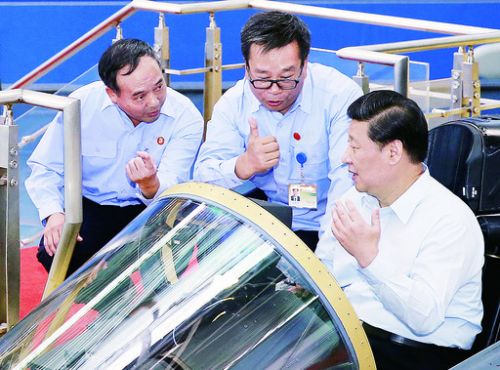 2013年8月30日,习近平在辽宁考察期间来到中航工业沈阳飞机工业(集团)公司、黎明航空发动机(集团)公司考察。仔细询问了舰载机及其他飞机研制进展情况,详细了解飞机空中加油及作战半径、武器性能及装备部队情况。在生产现场,习主席饶有兴致地登上战机,进入座舱,询问、了解飞机操作要领及座舱布局情况。