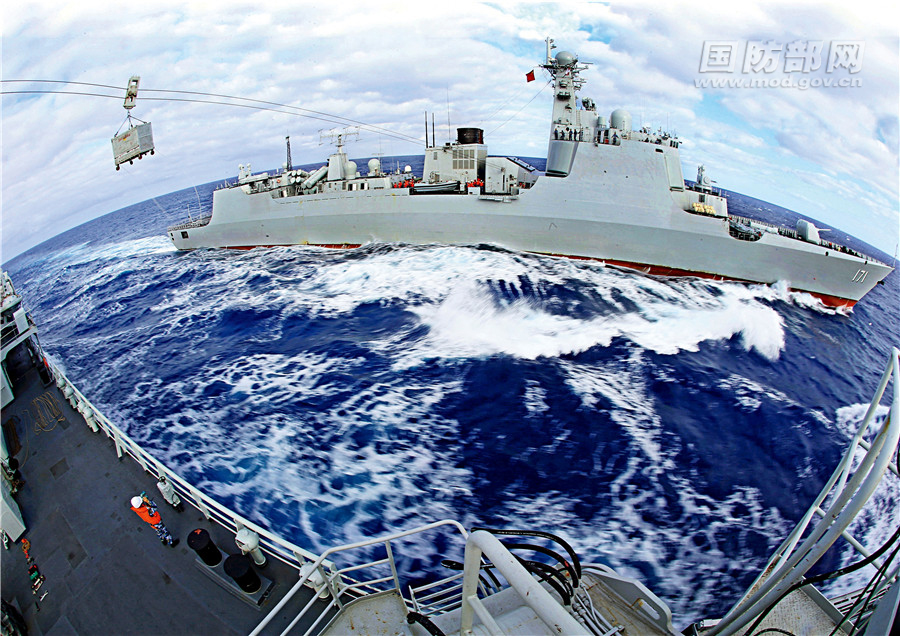 在印度洋航行期间,千岛湖舰为海口舰实施综合补给。