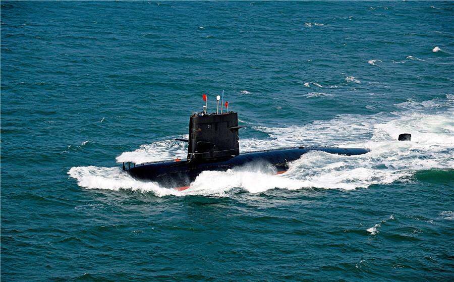 国产某新型潜艇高速机动。