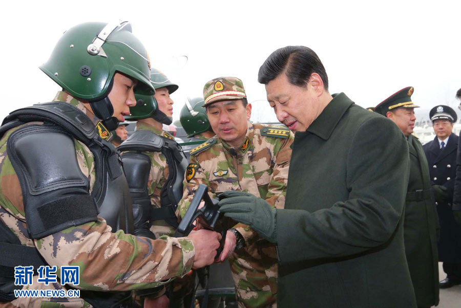 2013年1月29日,习主席在武警北京市总队十三支队察看部队装备。