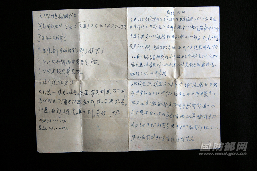 爷爷的信,我一一拍照留存,带着它们来到异国他乡。爷爷的战斗经历,爷爷对党的热爱,对军人荣誉的珍视时刻激励着我,父亲的鼎力支持,家人的默默关怀也时刻鼓励着我。三代人,代代参军,三代人,两代为国出征。我会珍视这份荣誉,坚定信念,头顶天空蓝,臂挂中国红,为国出征,不辱使命,贡献自己的青春力量,为这身军装添彩。