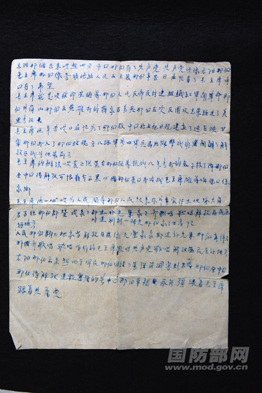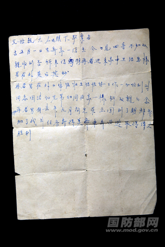 临出国的前几天,父母驱车千里专程来驻地为我送行,除了他们能想到的必备生活用品外,父亲还把爷爷年轻时在战场上写的家信也带了过来。那一刻,我似乎已经理解了父亲的用意。