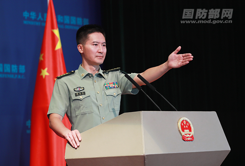 8月26日下午,国防部举行例行记者会,国防部新闻局副局长、国防部新闻发言人谭克非大校答记者问。