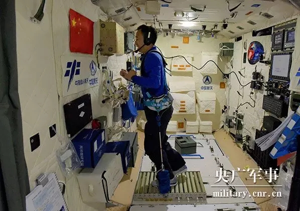 2016年11月9日,景海鹏在天宫二号飞行期间进行太空跑台试验。 陈冬摄